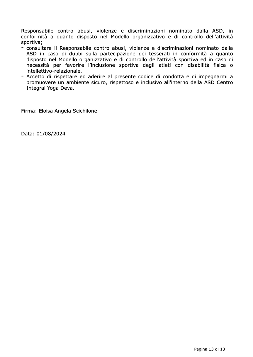 Con delibera del 01agosto 2024 è stato nominato il Responsabile contro abusi, violenze e discriminazioni (Responsabile Safeguarding)